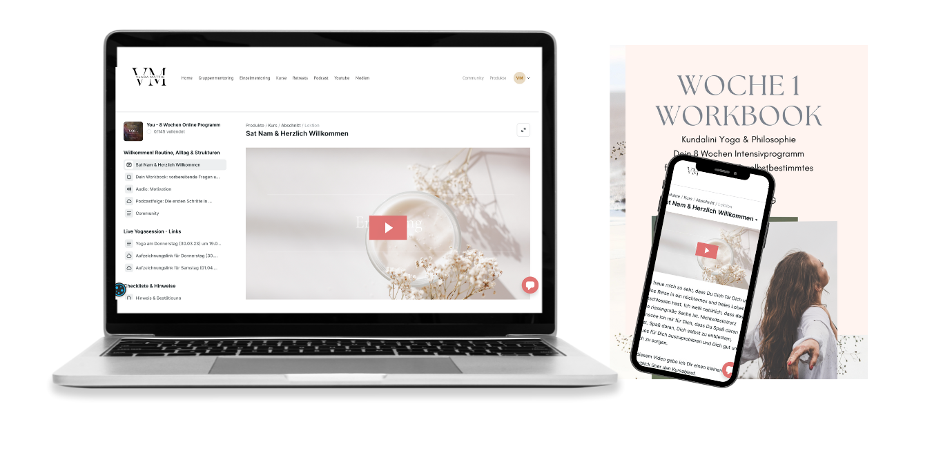 Videos der Kursinhalte in Deinem persönlichen Mitgliederbereich, sodass Du von überall und jederzeit darauf zugreifen und in Deinem eigenen Tempo vorgehen kannst