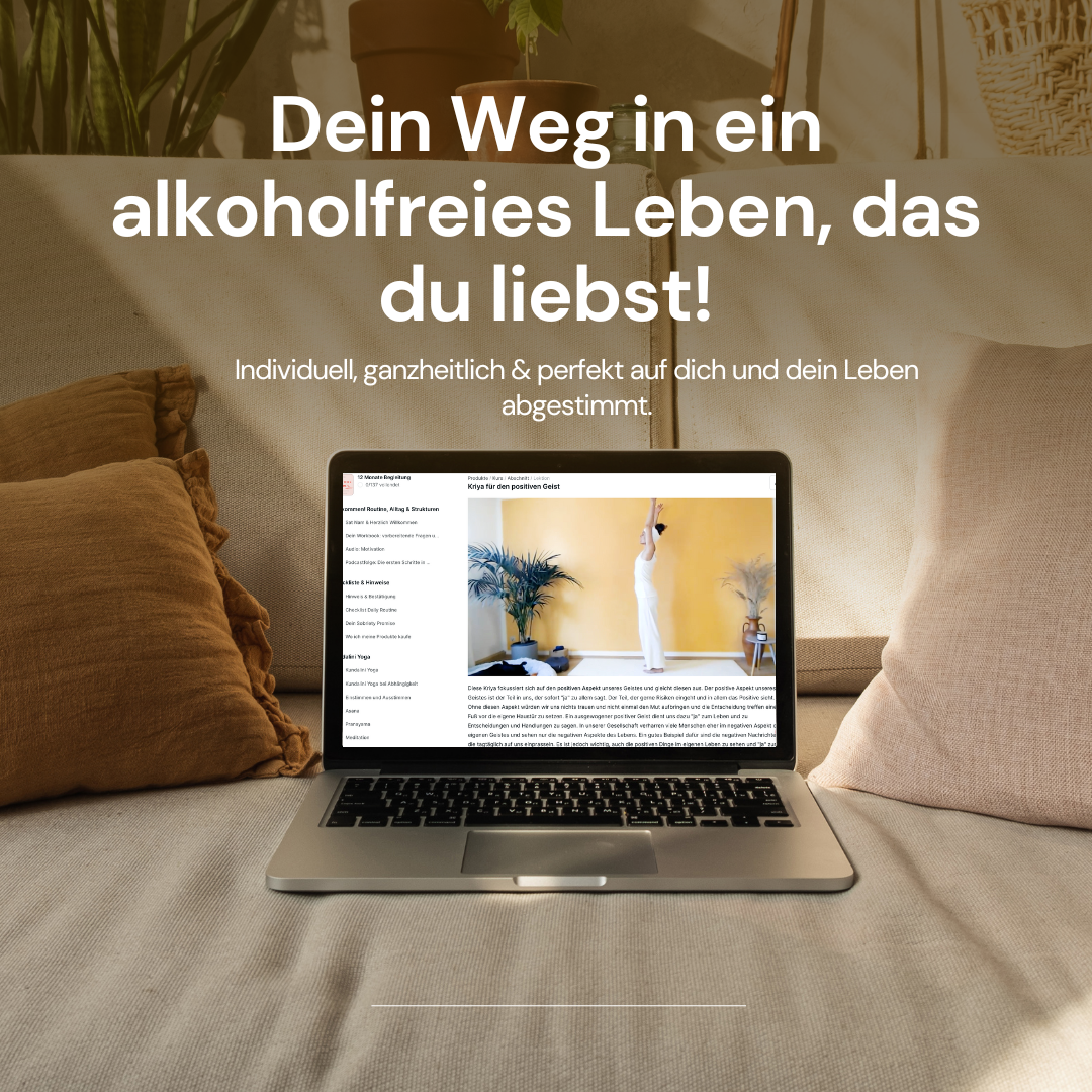 Genau deshalb ist "Nüchtern & Gesund" das ganzheitlichste und allumfassendste Programm auf dem Markt. Es verbindet meine Expertise aus Coaching, psychologischer Beratung, Kundalini Yoga & Meditation, Ernährung und Aromatherapie. Dieser Kurs ist so konzipiert, dass er dich dort abholt, wo du stehst, und dich Schritt für Schritt in deine wahre Freiheit begleitet.